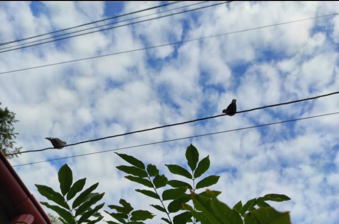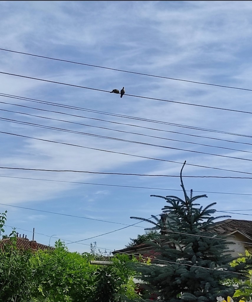 De mult timp….cred că din primăvară, o pereche de guguștiuci, un el și o ea… au poposit deasupra grădinii mele. În fiecare dimineață se așezau pe firele de electricitate ce trec chiar pe deasupra grădinii mele și mă priveau îndelung cum stăteam la masa din grădină și îmi serveam cafeaua, admirând grădina care strălucea sub razele soarelui dimineața foarte devreme. Erau atât de gingași și de drăgălași guguștiucii mei ! Îmi plăcea să mă uit la ei cum stăteau foarte apropiați și îmi dădeau o stare de bucurie văzând cum aveau grijă unul de celălalt !Într-o zi, plimbându-mă prin grădină și admirând fiecare plantă în parte am observat, că în pinul care tronează semeț fix în mijlocul grădinii apăruse o „vecină”, nu era nimeni alta decât doamna guguștiuc ce stătea mândră în cuibul făcut pe furiș de jumătatea ei, guguștiucul. Eram foarte mândră de noua mea vecină și de faptul că a ales să își împartă cu mine momentul formării unei familii, fiindcă draga de ea, stătea în cuib pe un oușor ! Timp de mai multe zile la rând, „vecina” mea a stat în cuib iar el o vechea de alături din tufa de trandafiri. Chiar și când a plouat torențial niciunul dintre ei nu și-a părăsit locul, ea stătea tot în pin pe oușor, iar el tot în tufa de trandafiri foarte aproape de ea ! Nu știu ce s-a întâmplat, dar într-o zi cuibul era gol iar oul l-am găsit spart….. poate a fost vreo pisică…dar timp de două zile cuibul a rămas gol. Cu o ultimă speranță, s-a întors în cuib doamna guguștiuc și a încercat să își ducă la capăt procesul de clocire al oului, neștiind biata de ea că acesta era spart. A continuat să stea pe ou în cuib aprox o săptămână, după care l-a părăsit…Un timp, guguștiucii mei au mai rămas împreună deasupra grădinii mele, eu îi priveam de la masa mea, iar ei mă priveau de pe firele de curent. Apoi…nu știu ce s-a întâmplat, dar nu mai vedeam decât un singur guguștiuc, celălalt era mereu plecat, rareori îi mai surprindeam împreună… Acum sunt tot în apropierea casei mele, împreună dar nu foarte apropiați, se mai așează uneori pe fire, la distanță unul de celălalt, dar cel mai des se odihnesc la soare în salcâmul dezgolit de frunze, pe ramuri diferite… Deși sunt la distanță (nu foarte mare unul de celălalt), îi mai surprind uneori cum zboară unul în direcția celuilalt, ori mai stau alături pentru câteva momente.